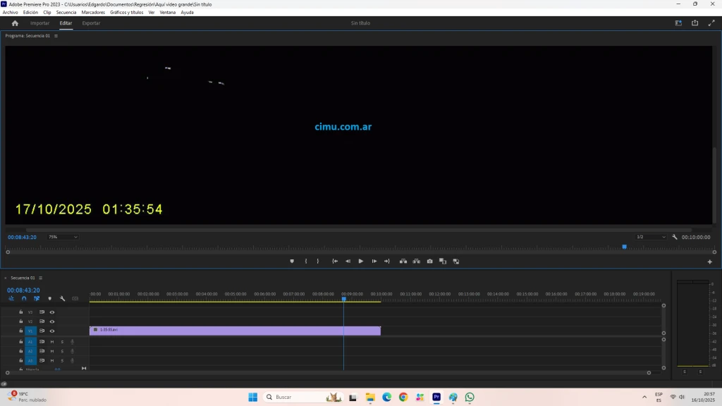 Avistamiento desde una cámara con visor nocturno, en el mismo video pueden verse satélites. Se nota a simple vista, se ve la diferencia entre un satélite o una aeronave terrestre, el tamaño del objeto impacta y la baja altura a la que se desplazaba. El objeto va en dirección contraria para donde se desplazaba apenas minutos antes. El visor nocturno tiene cambiado el mes.
